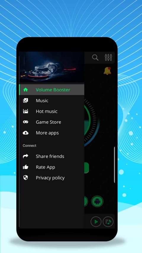 Penambah volume dan equalizer Aplikasi sederhana, kecil, gratis untuk meningkatkan volume suara speaker atau headphone Anda. Berguna untuk film, buku audio dan musik, nada dering, musik di mobil, speaker bluetooth penguat volume.