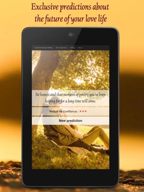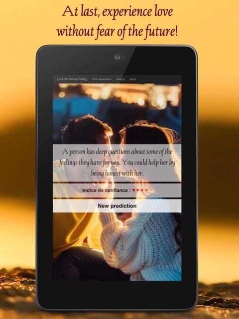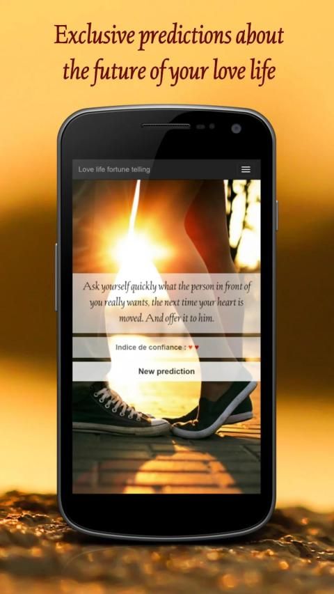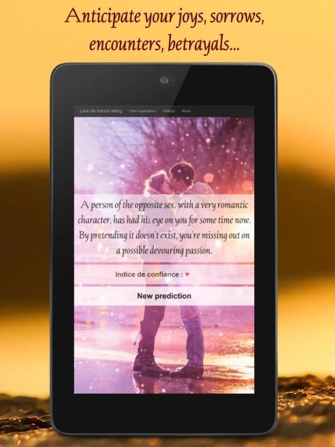 Love life fortune telling is an application that will help you answer these kinds of little questions! Thanks to it you will be able to receive up to 3 personal predictions about your future and benefit from an essential love orientation to navigate and sort through your doubts and romantic dreams. It will then be easy to anticipate betrayals, joys, disappointments, encounters or simply embrace the happiness and love you so richly deserve.