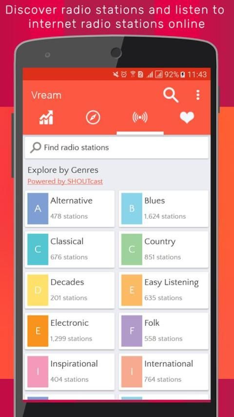 ✓Search dan mendengarkan stasiun radio internet online dengan pemutar radio Vream