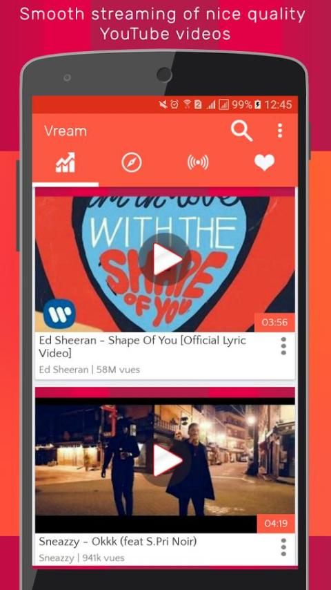 Vream adalah klien Youtube dan pemain untuk Android, itu tidak download video atau bermain mereka di latar belakang.