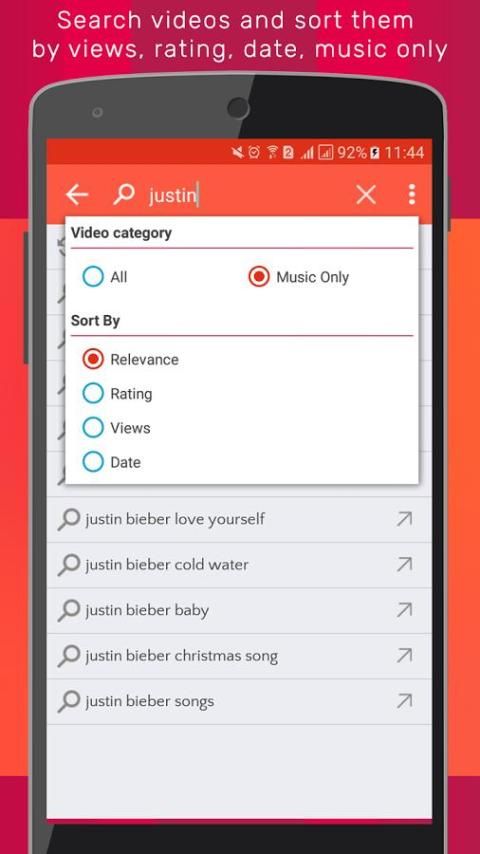 ✓Search video dan mengurutkan mereka dengan pandangan, rating, tanggal ...