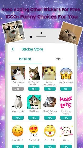 Unduh dan instal aplikasi stiker meme kucing lucu ini, buka untuk mengaktifkan semua fungsi.