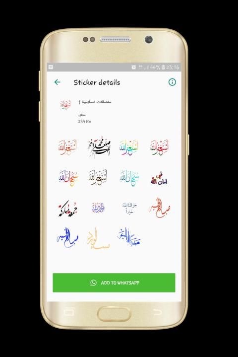 لا تنسوا مشاركة هدا التطبيق العربي الدي يمكنك من خلاله اضافة الملصقات الإسلامية الخاصة بتطبيق الواتس اب