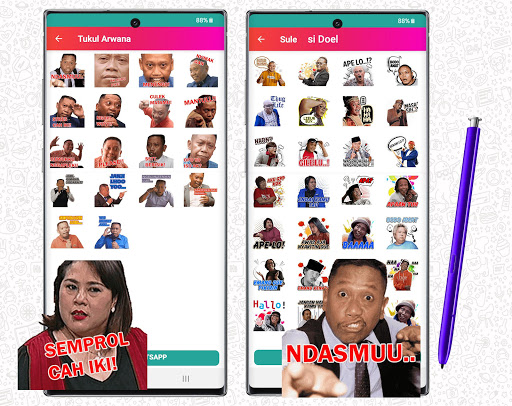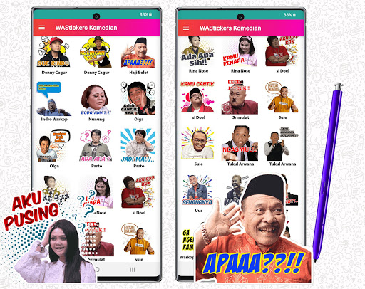 bedu, timbul, srimulat, warkopdki, haji bolot, komeng, cak lontong, dono kasino indro, rina nose, OVJ, Vicky. Cagur, Bedu, Komeng dan masih banyak lagi. Kangen Andre raja gombal, kenangan olga, lagu andeca andeci, jailnya Sule dkk, dalam berbagai macam bahasa gaul, sunda, jawa, betawi yang ditamplikan dalam bentuk stiker WA gambar lucu yang bisa anda download dengan gratis. Sticker comedian Srimulat Warkop juga tersedia. Sticker comedian Youtuber di Indonesia adalah selayaknya artis yang mempunyai banyak fans. Dua youtuber terkenal Indonesia yang mempunyai subscriber paling banyak tentu saja adalah atta halilintar, ria ricis, raditya