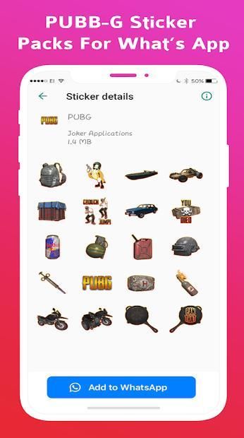 Discover apps for Android here, 20,000+ users downloaded Pub-G Stickers For Whatsapp latest version on 9Apps for free every week! It works great even on 2G. This hot app was released on 2018-12-07. Here are some guides of this app: