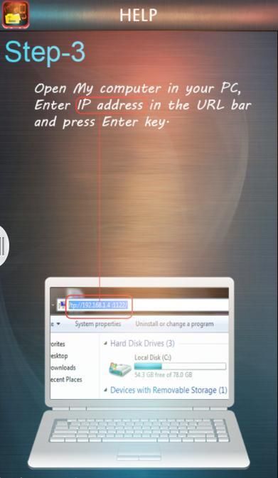• Untuk menggunakan WIFI Data File aplikasi Transfer, komputer dan telepon Anda harus berada di daerah yang sama lokal (atau wlan) jaringan.