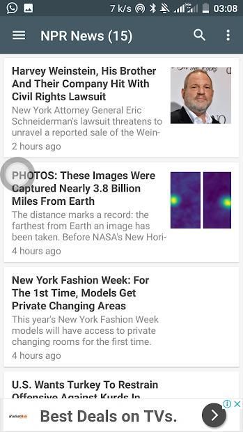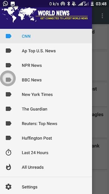 News sources in the World News App include: