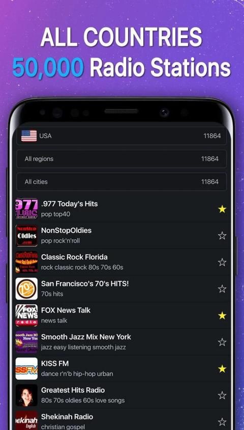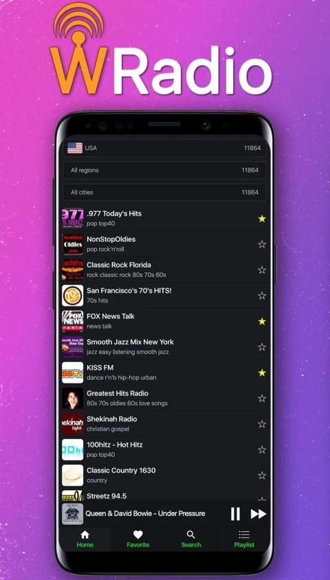 WRadio has over 11,000 radio stations in the United States and 50,000 radio stations in 200 countries for free. Sports, news, music and culture are the most popular radio stations in all languages.