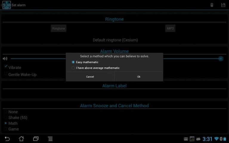 Atau Anda dapat memilih Matematika memecahkan untuk membatalkan metode alarm.