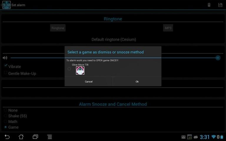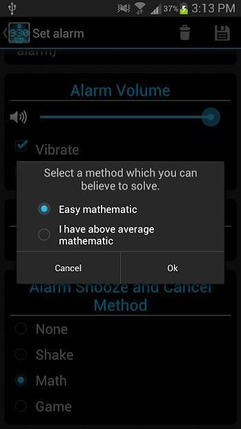 ✭ Shake, dengan matematika atau dengan permainan alarm membatalkan metode