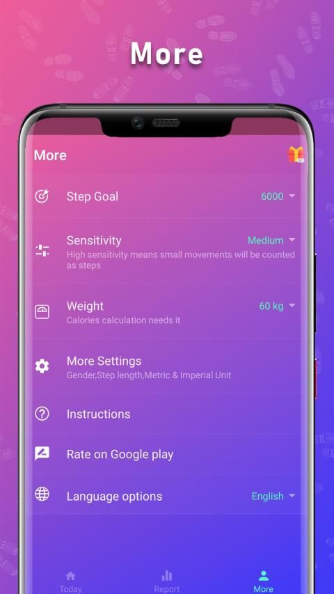 Anda dapat mengatur tingkat sensitivitas - Sensitivitas tinggi berarti gerakan kecil akan dihitung sebagai langkah.