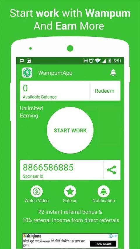 Earn Daily 100Rs with WamPum App.