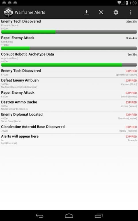 Mendorong alert untuk Warframe, dirancang untuk memberikan pemberitahuan informatif bukan hanya "Alerts New".