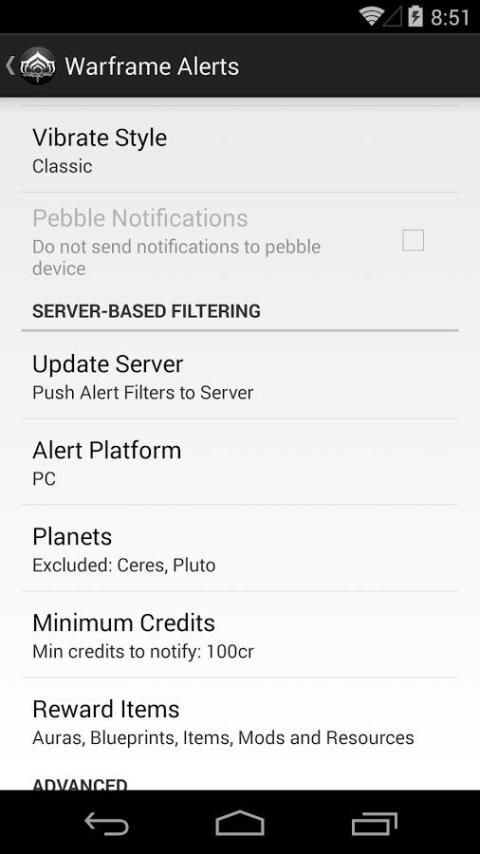 CATATAN: PS4 dan XB1 alert berada di pengaturan, aplikasi ini defaultnya Warframe alert untuk PC, tapi di halaman pengaturan Anda dapat memilih untuk menerima atau PS4 XB1 alert bukan (atau juga jika Anda benar-benar ingin).