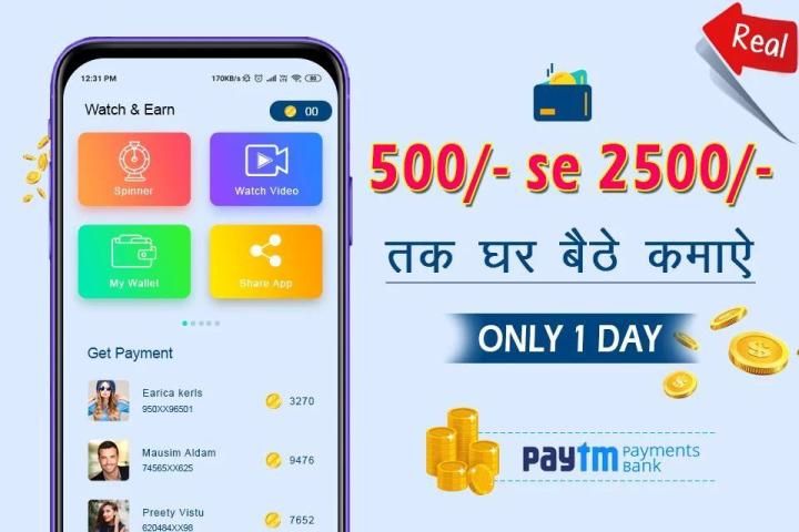 Pengguna akan mendapatkan poin setelah setiap tugas selesai. Pengguna akan menonton video dan mendapatkan uang, bisa mendapatkan uang tunai gratis, isi ulang gratis, kupon diskon gratis dan Paytm dan banyak lagi. tonton video penawaran harian Di aplikasi ini, Pengguna dapat memperoleh uang gratis dengan menyelesaikan penawaran dan tugas.