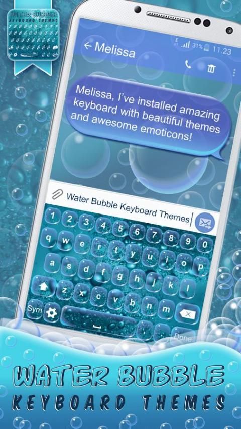 Fantastic “water bubble” keyboard themes with emojis can be yours today free of charge!!! How???!!! By downloading our collection of fancy keyboard themes for Android. We can guarantee to you and all your friends great fun and perfect look of your keyboard background! Step into the glowing world of colorful bubbles keyboard designs and don't miss this opportunity to beautify your phone display with amazing shiny bubbles. A great number of bubble “emoji themes” is waiting for you in our latest keyboard app for AndroidTM. Get this water color keyboard free of charge because it will make your phone look special.▶ Water Bubble Keyboard Themes ◀ just for you ;)