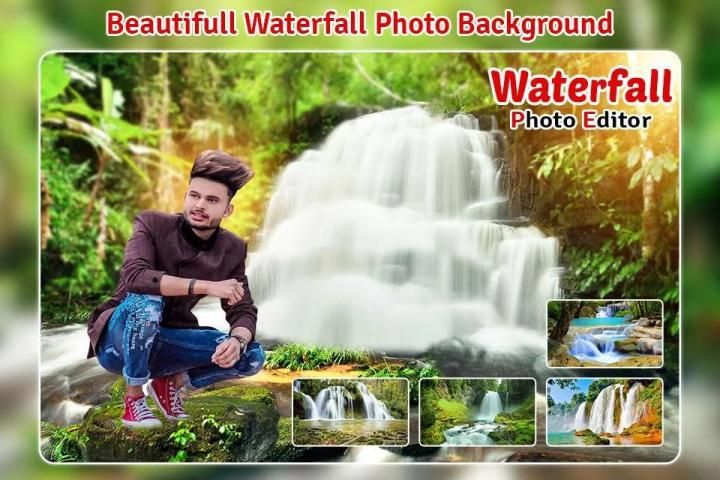 Editor foto air terjun memiliki banyak foto air terjun yang indah yang akan membantu Anda mengatur latar belakang air terjun ke foto Anda. Selfie dengan air terjun seperti nama Anda dapat memberi nama untuk selfie Anda. Latar belakang foto air terjun dan bingkai foto air akan membuat foto Anda lebih indah.