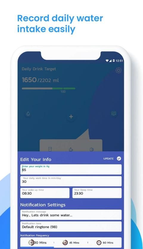 Water Reminder - Daily Water Tracker is one of the most popular water tracking apps on the market to water intake. Enter your personal information and let the app calculate how much water you should drink daily. Record the amount of water that you’ve consumed.