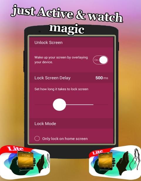 Swip hand to lock Screen : wave lock / Unlock is the app use proximity sensor to lock and unlock the screen by way wave your hand over the proximity sensor. Protect power button on your phone.