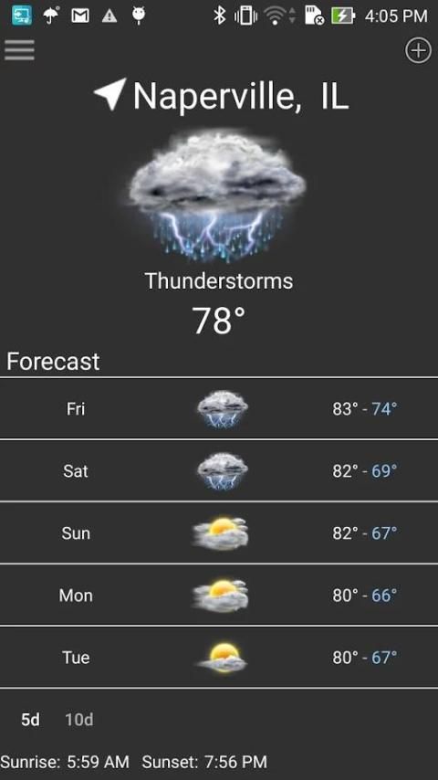 Periksa ramalan cuaca 5 atau 10 hari, bersama dengan cuaca saat ini dan matahari terbit dan terbenam.