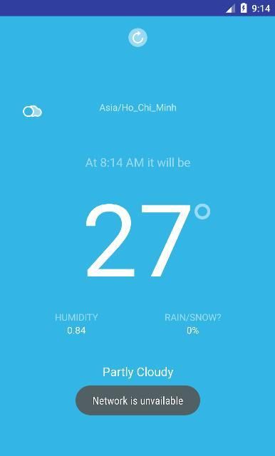 Melihat aplikasi cuaca di Kota Ho Chi Minh, memperbarui periode waktu saat ini.