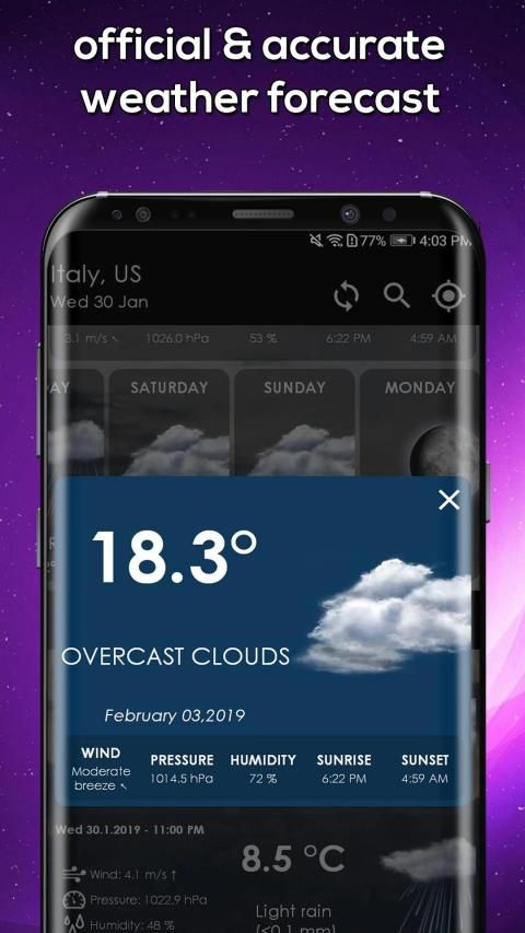Get weather information you need with Weather Forecast Local Weather Network, Weather Channel & Hourly Weather Update. It’s not only a weather detector for your own location but also global weather tracker that you can search world weather and temperature.