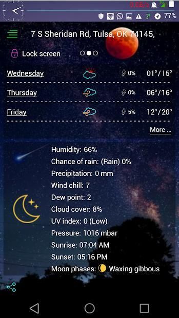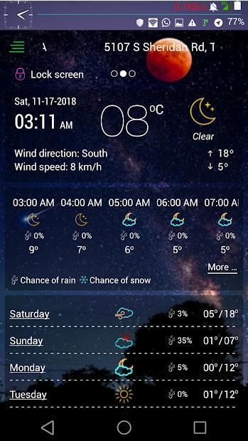 Weather forecast when you are automatically. There is a lot of information in the weather which includes weather, atmospheric atmosphere, relative humidity, varying distances, different regions, dew points, wind speed and direction, besides that, also hourly weather forecasting.