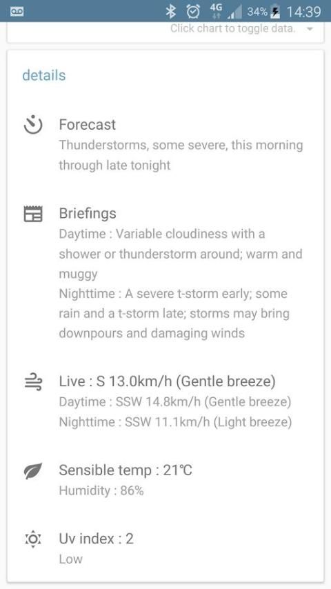 Kecepatan angin, suhu Sensible, Kelembaban, indeks UV dan lebih ...