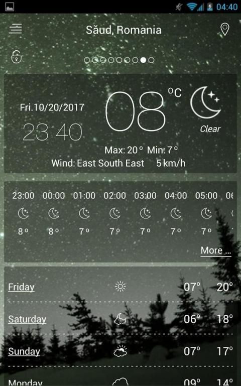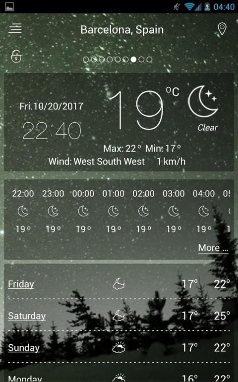 pencarian Prakiraan cuaca untuk alamat Anda secara otomatis, ramalan cuaca hari ini dan memberikan suhu saat ini dalam Celcius dan Fahrenheit, ramalan cuaca hari ini matahari terbit dan terbenam kali sesuai dengan pembaruan cuaca zona waktu kota.