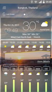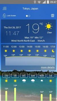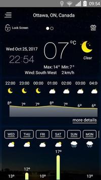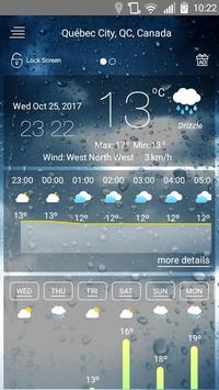 Aplikasi cuaca mendeteksi prakiraan cuaca di lokasi Anda saat ini secara otomatis. Ada banyak informasi dalam forcast cuaca yang meliputi tekanan atmosfer, kondisi cuaca, jarak pandang jarak, kelembaban relatif, presipitasi pada daerah yang berbeda, titik embun, kecepatan angin dan arah, selain perkiraan sepuluh hari mendatang, juga peramalan cuaca per jam.