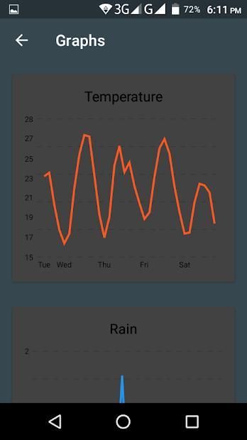 »Mendukung geo-positioning untuk mengambil kondisi cuaca untuk lokasi Anda saat ini. Input lokasi manual juga didukung.