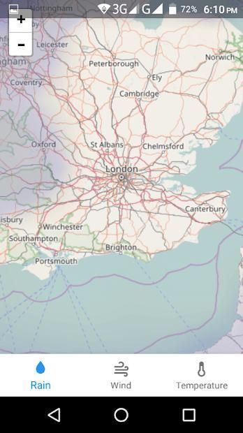 » Weather map shows rain, wind speed and temperature.