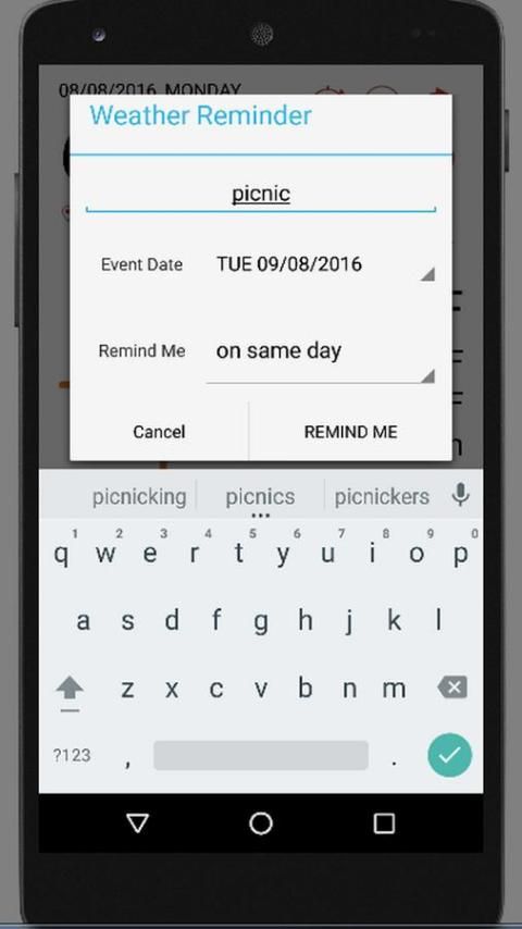- Pengingat Cuaca peringatan, Anda dapat mengatur peringatan pada tanggal tertentu / waktu untuk mendapatkan informasi cuaca terbaru (lihat screenshot)