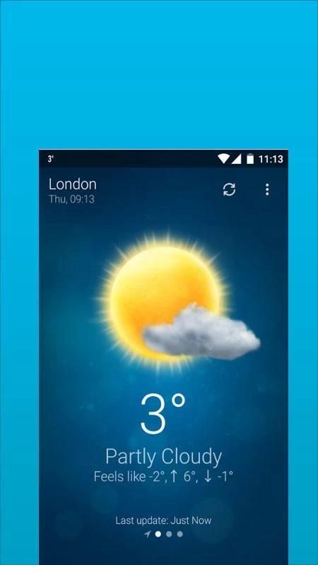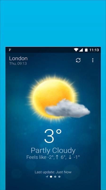 - Cuaca mendukung geo-posisi, mengambil kondisi cuaca terbaru untuk lokasi Anda saat ini