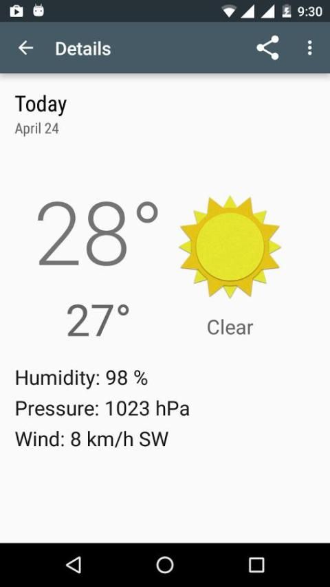 - Kemampuan untuk berbagi ramalan cuaca dengan teman dan keluarga melalui sendiri aplikasi pesan / email Anda.