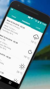 Cuaca kadang-kadang sulit untuk memprediksi. aplikasi cuaca yang akurat ini memungkinkan untuk mengetahui perkiraan rinci di manapun Anda berada, untuk setiap saat sepanjang hari atau selama 7 hari berikutnya hanya dengan menekan pada ikon: