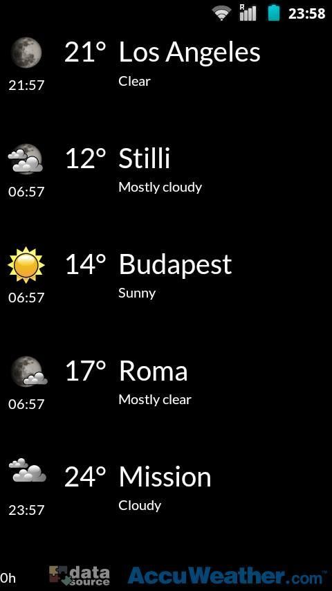 Lima lokasi yang berbeda dapat diperiksa secara bersamaan untuk tetap up to date dengan kondisi cuaca dan waktu lokal. Fungsi autorefresh dapat digunakan untuk menyimpan data up to date dengan biaya minimal untuk daya tahan baterai. Data dapat refresh berdasarkan indikator umur data yang terletak di pojok kiri bawah.