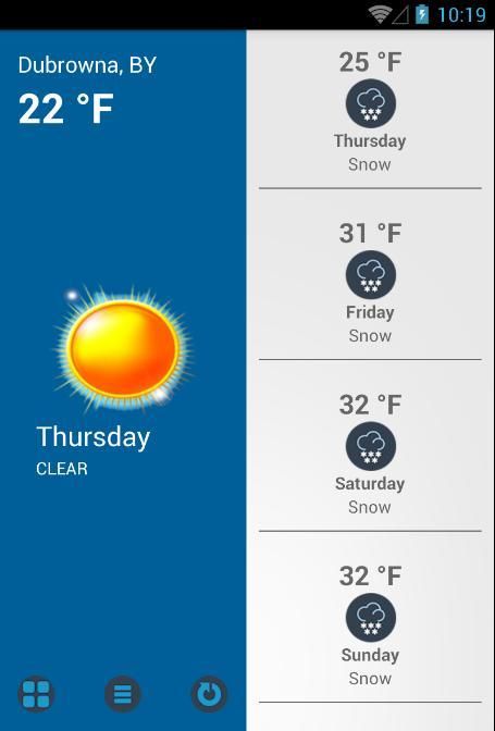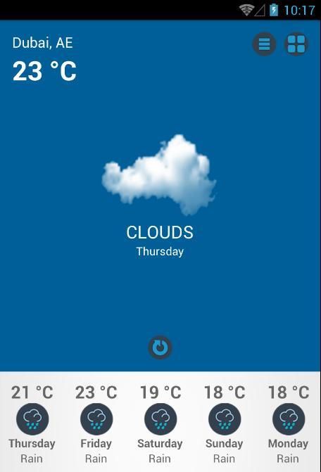 Cuaca buletin adalah sangat mudah untuk menggunakan aplikasi ini untuk selalu menyadari cuaca dan perkembangannya. Cuaca Bulletin adalah sebuah aplikasi yang dirancang khusus untuk menjadi seperti sederhana dan intuitif mungkin. Dengan satu klik, Anda berada di kondisi cuaca Status bar menampilkan untuk daerah. Memberikan pengamatan cuaca rinci dan perkiraan untuk saat ini di seluruh dunia, ia berusaha alamat Anda secara otomatis, dan memberikan suhu saat ini di Celsius dan Fahrenheit. Situasi saat ini juga menyediakan cuaca dan kelembaban relatif