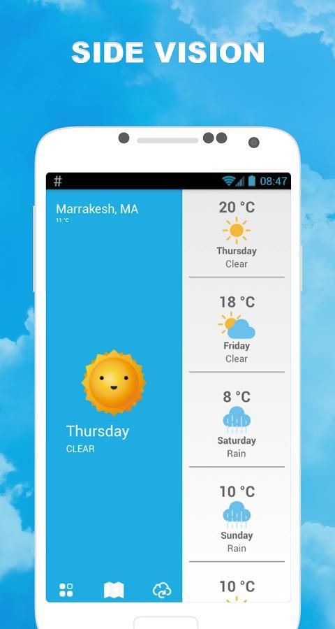 dengan peta cuaca digital dan ramalan cuaca widget. Dengan itu, Anda bisa mendapatkan informasi cuaca hidup dan cuaca nyaman ini memberikan informasi cuaca lokal akurat seperti tertinggi / suhu terendah dan kondisi cuaca saat ini.