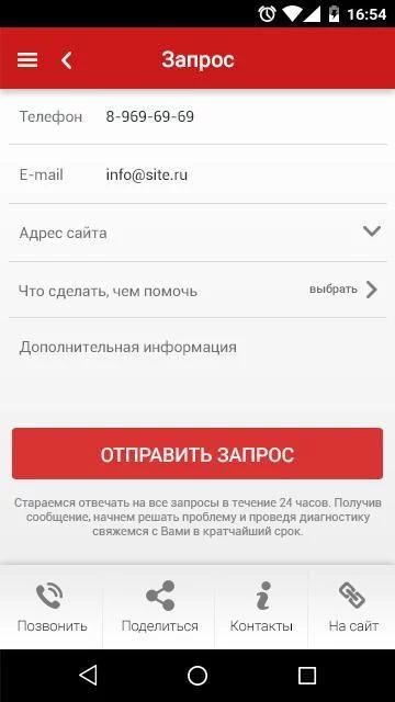 - Ada masalah di situs, atau kebutuhan untuk bekerja? Tekan "SOS!" dan mengirim permintaan. Masukkan alamat aplikasi pra-konfigurasi dari situs dan kontak e-mail dan Anda dapat mengirim permintaan dengan dua klik!