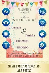 Pernikahan aplikasi kartu pembuat memberikan template readymade, stiker dan mengutip untuk membuat kartu undangan Anda sangat mudah.