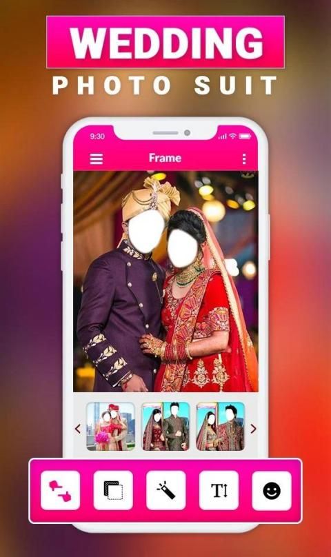 Design your photo and surprise your beloved and set couple goals for everyone else. Wedding photo suit is a superb application through which you can try on different bridal dresses or groom dresses along with awesome background.
