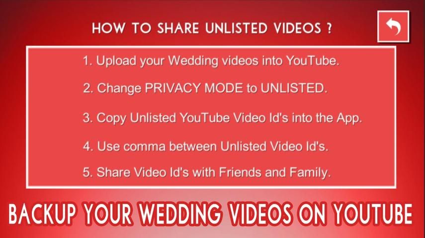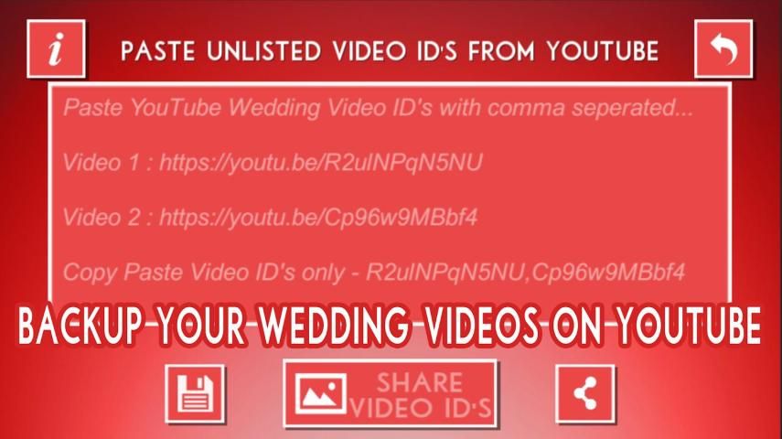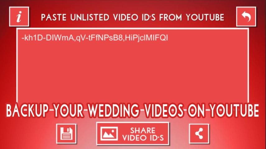 Backup your Wedding Videos in YouTube and Create a Video Gallery. Share Video Id's with Family and Friends easily.
