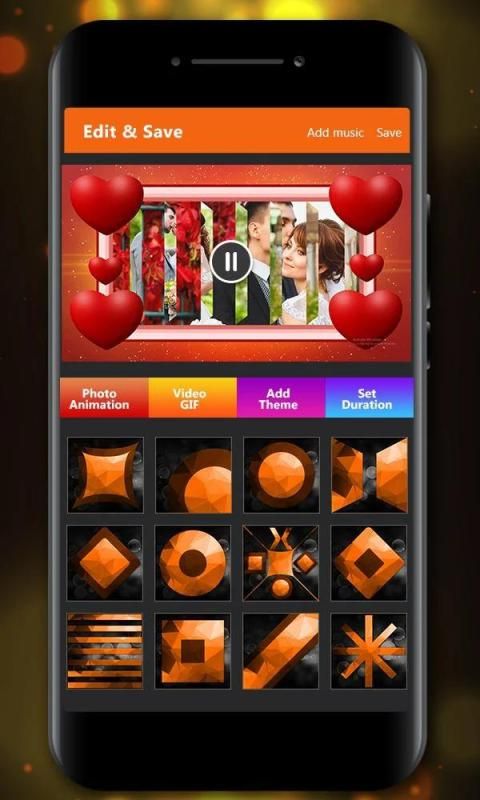 1. "Pembuat Video Animasi Foto Tunggal": - Dapatkan Gambar dari galeri lalu atur tema video animasi pernikahan untuk memberikan efek terbaik dari gambar Anda.