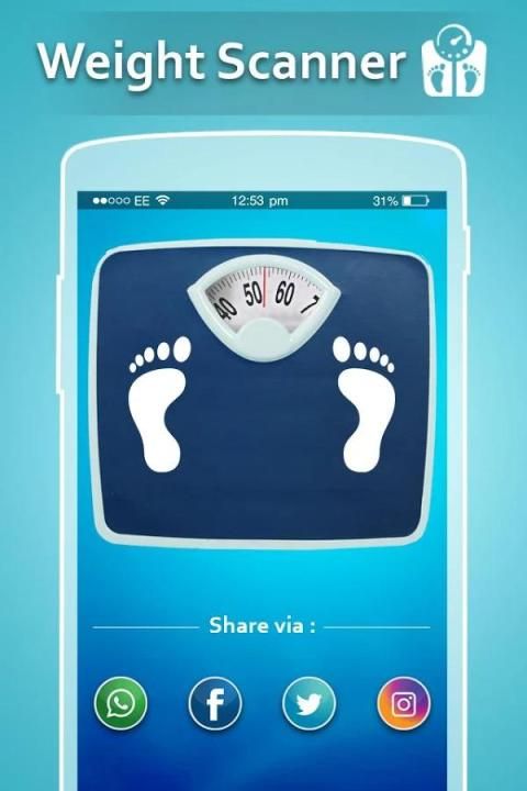 Berat aplikasi Mesin Scanner melalui Anda memindai berat badan Anda dan membuat bersenang-senang dengan teman-teman Anda.