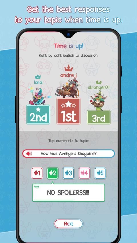 Ketika waktu habis, 5 respons terbaik untuk topik Anda akan ditampilkan.