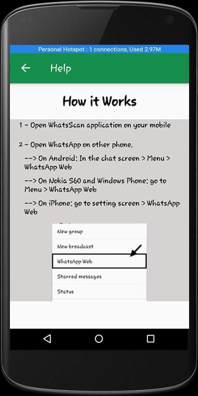 1. Instal dan Buka WhatScan Untuk Web Whatzapp pada perangkat (Telepon / Tablet) yang ingin Anda sinkronkan / mengkloning whatsapp Anda, Hack untuk Whatsapp.