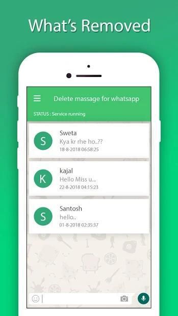 - Unduh Whats Dihapus aplikasi dan ketika Anda menghapus pesan apa pun masuk aplikasi dan Anda akan melihat semua pesan yang telah Anda hapus