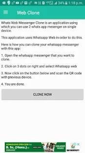 This app is created by us and it is not an official WhatsApp application. We are in no way associated with Whatsapp Inc. This app does not collects or save any user information or credentials. We are using whatsapp web to clone whatsapp messenger. This Application doesn't intend to hack anything but is just for public interest, to easily monitor or do parental control or for knowledge purpose only. Use this application constructively.