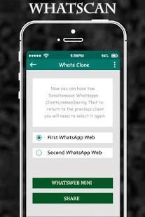 - Scan kode QR di layar aplikasi whatscan dari ponsel Android lainnya.